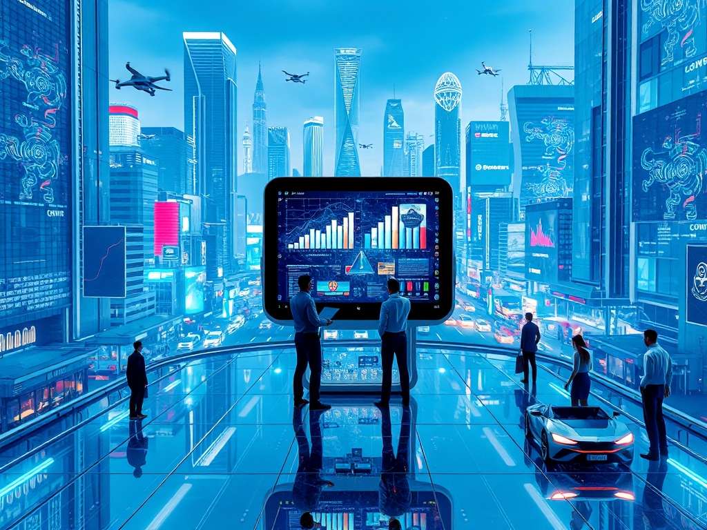 - 全息投影演讲:你挥挥手,3D数据图表就在空中旋转。